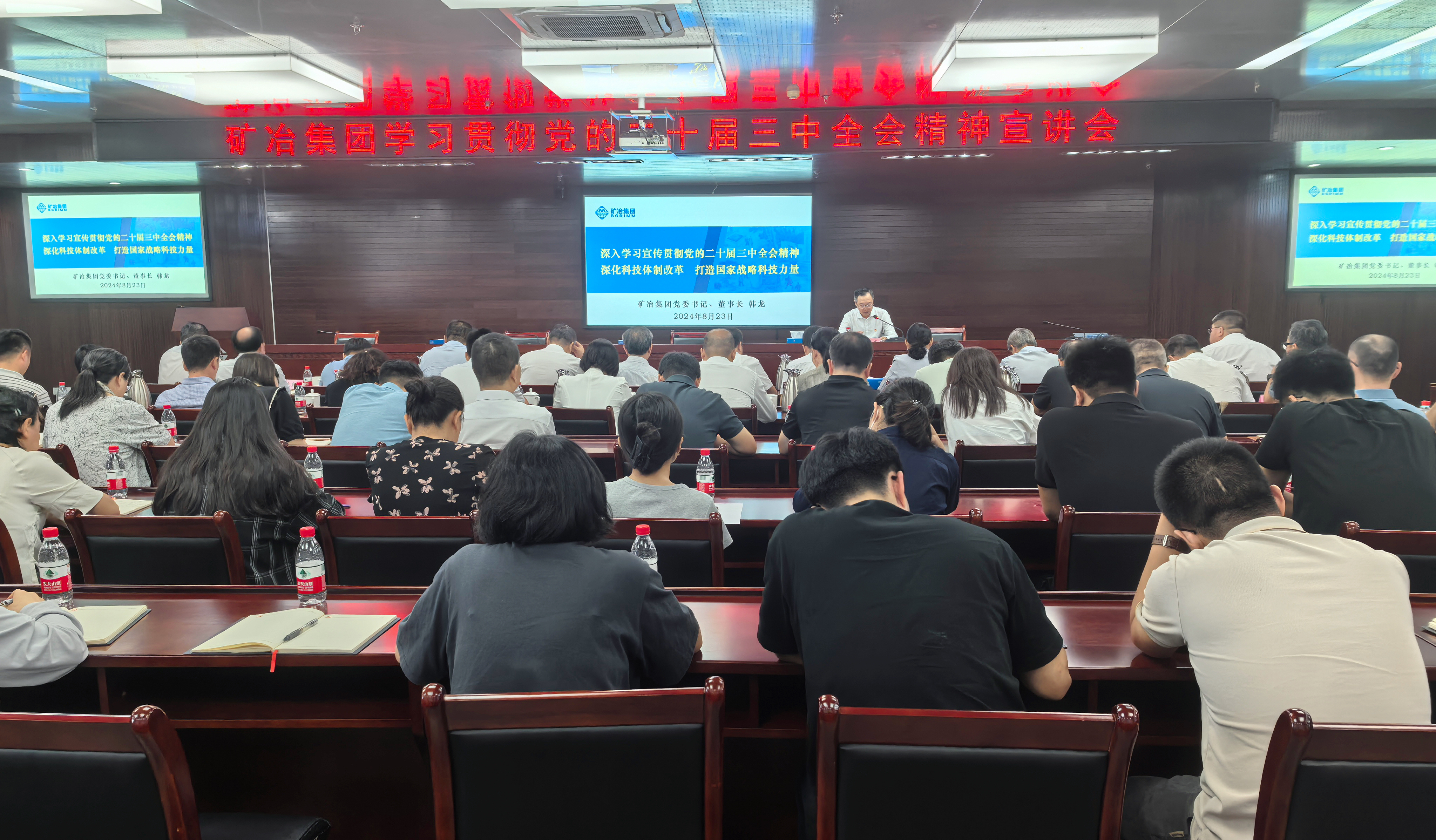 8月23日,toto彩票集团党委书记、董事长韩龙以《深入学习宣传贯彻党的二十届三中全会精神 深化科技体制改革 打造国家战略科技力量》为题宣讲党的二十届三中全会精神。
