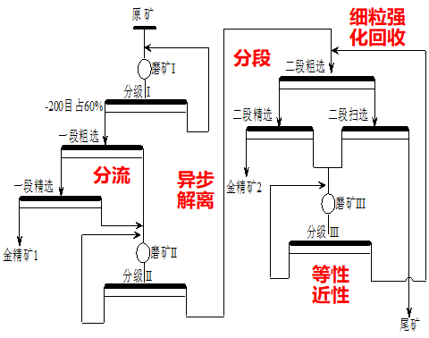 适用于复杂石英脉型和微细粒浸染型单一金矿,以及低品位金锌多金属矿和含铜铅锌金精矿等四种不同类型复杂金资源典型矿山。