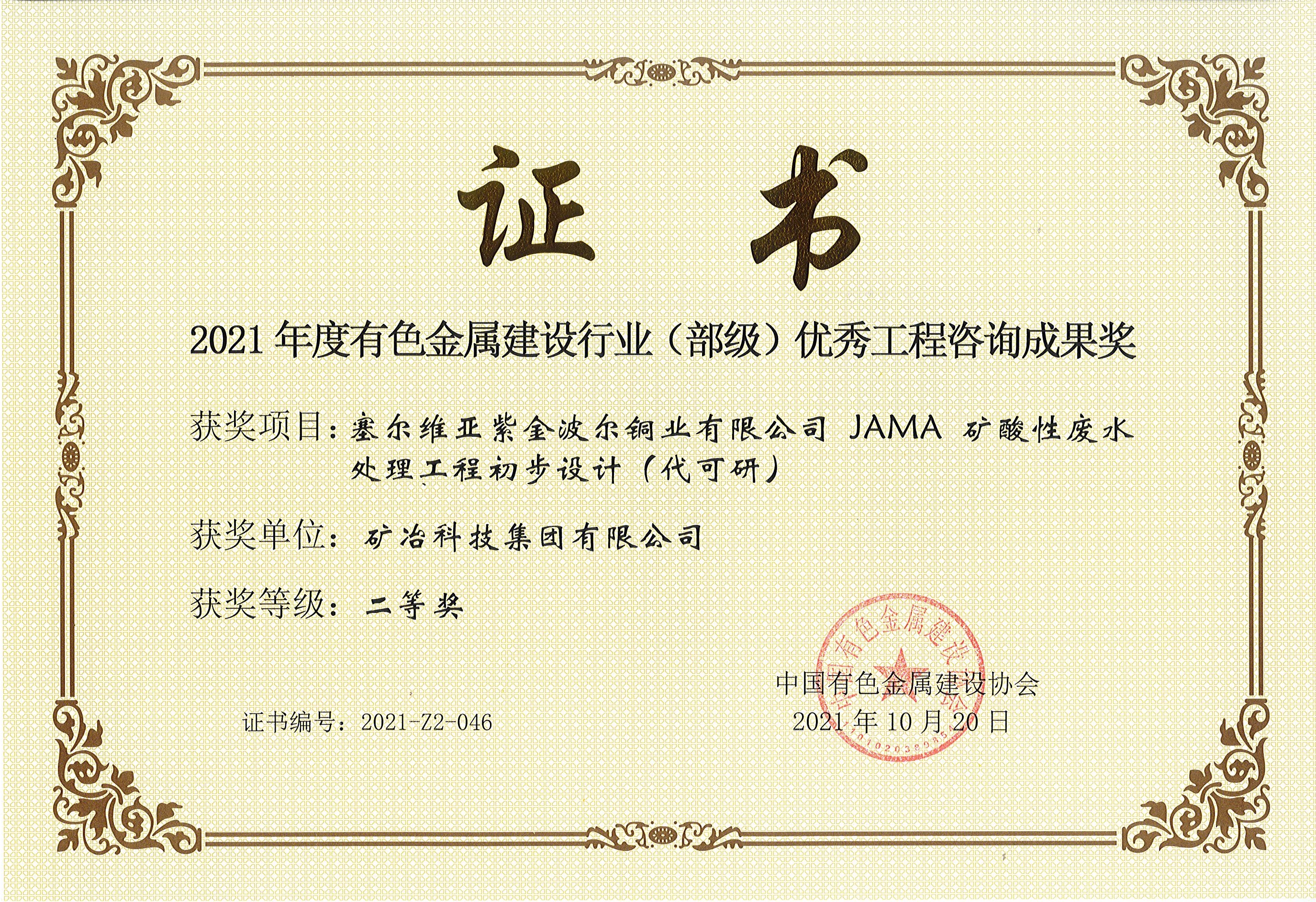 塞尔维亚紫金波尔铜业有限公司JAMA矿酸性废水处理工程初步设计(代可研...