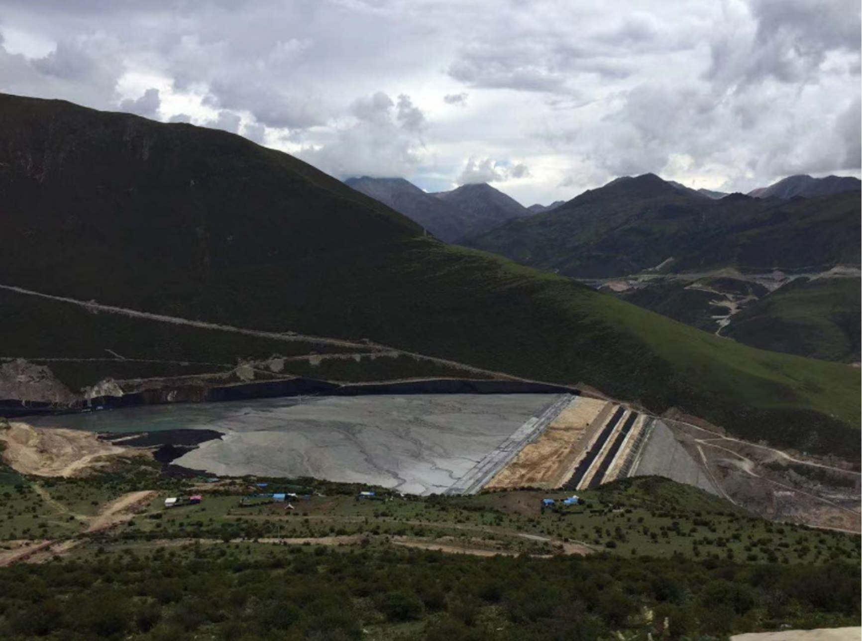 2019年4月,集团中标西藏华泰龙矿业开发有限公司二期果郎沟尾矿库子坝(4265-4315m)EPC总承包工程项目,该项目位于西藏自治区拉萨市墨竹工卡县境内,为国内首座高寒高海拔地区膏体上游法尾矿库。设计采用“初期坝+膏体上游法”方式堆存,服务选厂生产规模40000t/d,初期坝高85m,总坝高260m,总库容7002.2×104m3,有效库容6862.1×104m3,设计等别一等库。该尾矿库具有容量大、坝体上升速度快、排放浓度高、浸润线低、干滩难以形成等特点,安全快速筑坝已成为企业稳定正常运行的一大难题。集团尾矿专家创造性地提出了模袋法及渣土联合筑子坝方案,得到国内行业专家高度评价,为此类尾矿库筑坝提供了经济合理技术可行的解决方案。
