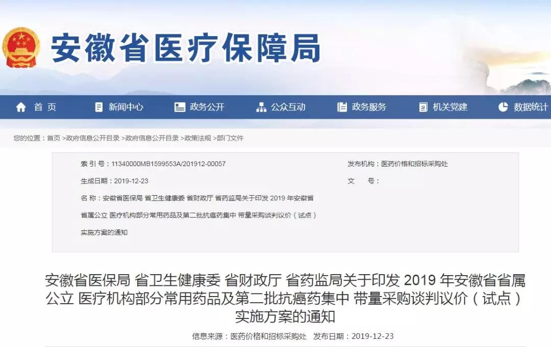对于哪些药品将参加带量采购,安徽明确:以采购额分别占2018年度省属公立医疗机构抗生素类(头孢菌素类及相关药品)化药90%的产品和第二批抗肿瘤类化学药品80%的产品为基础,结合2019年上半年采购情况及临床专家意见遴选带量采购药品目录。