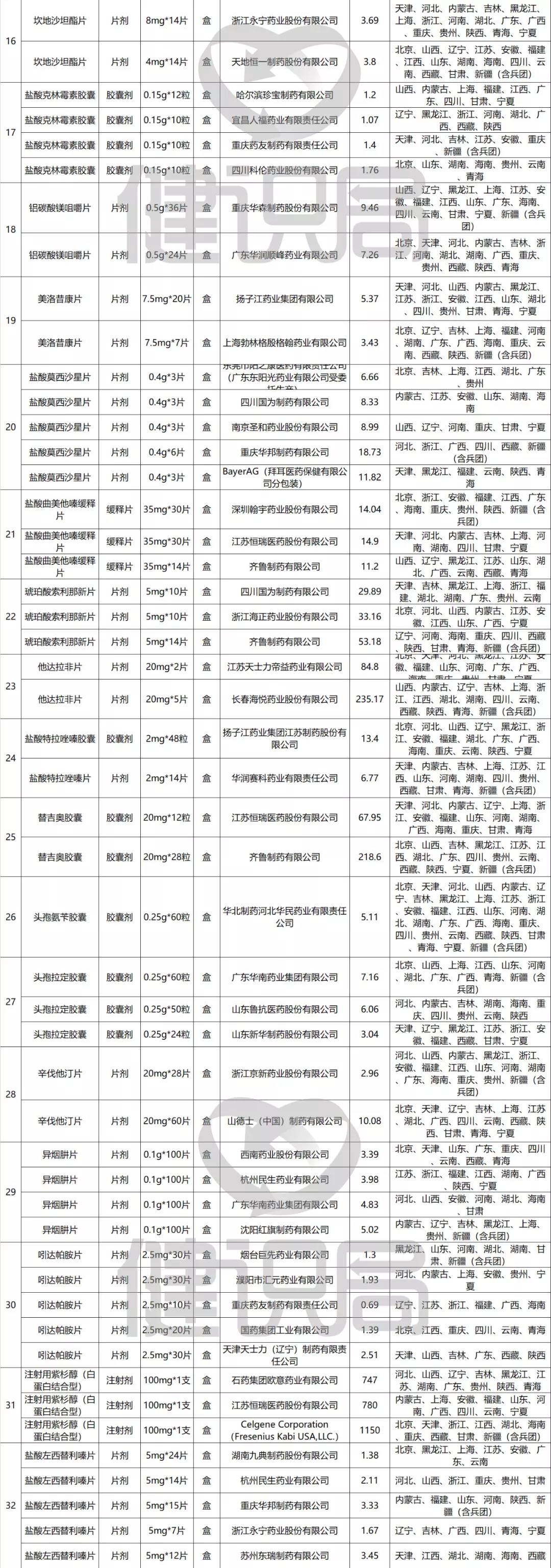 据健识局了解,本次集采的33个品种中32个采购成功,共100个产品中选。122家企业参加,产生拟中选企业77家。与联盟地区2018年最低采购价相比,拟中选价平均降幅53%。