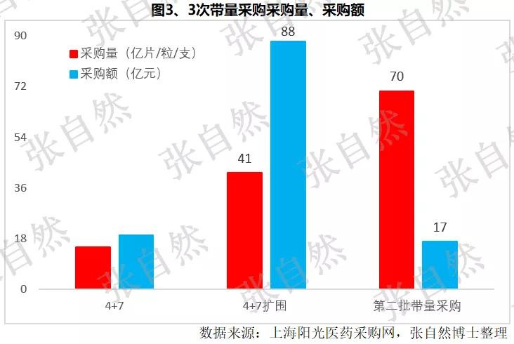 采购量由4+7试点和4+7扩围时的15亿片和41.4亿片(按首年约定量的60%计),增长到本次(第二批带量采购)的70.4亿片(按首年约定量的60%计),本次较4+7扩围时增长了70%;