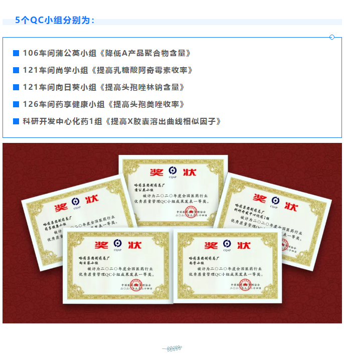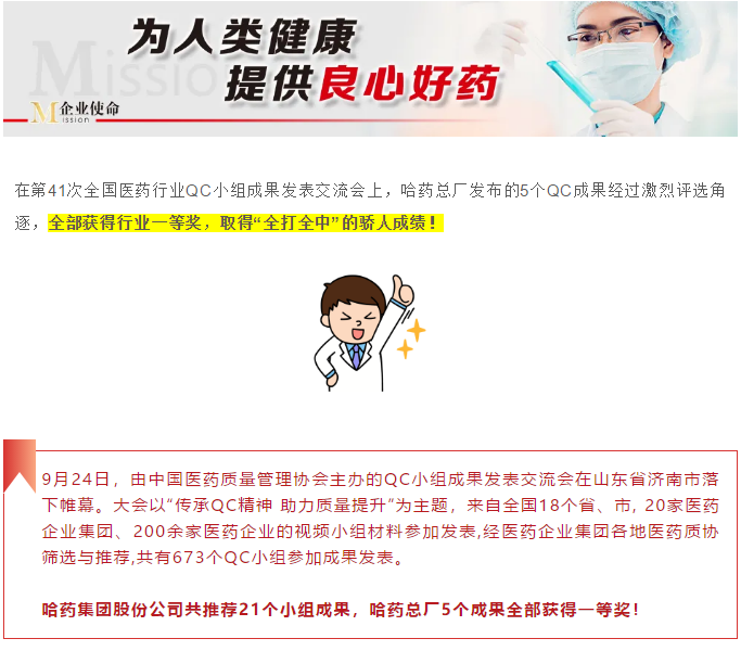 荣耀时刻!哈药总厂5个QC成果全部获得国家级一等奖
