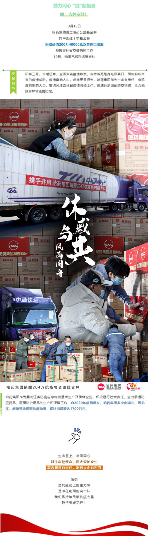休戚与共,风雨同舟!toto彩票 捐赠204万抗疫物资驰援吉林