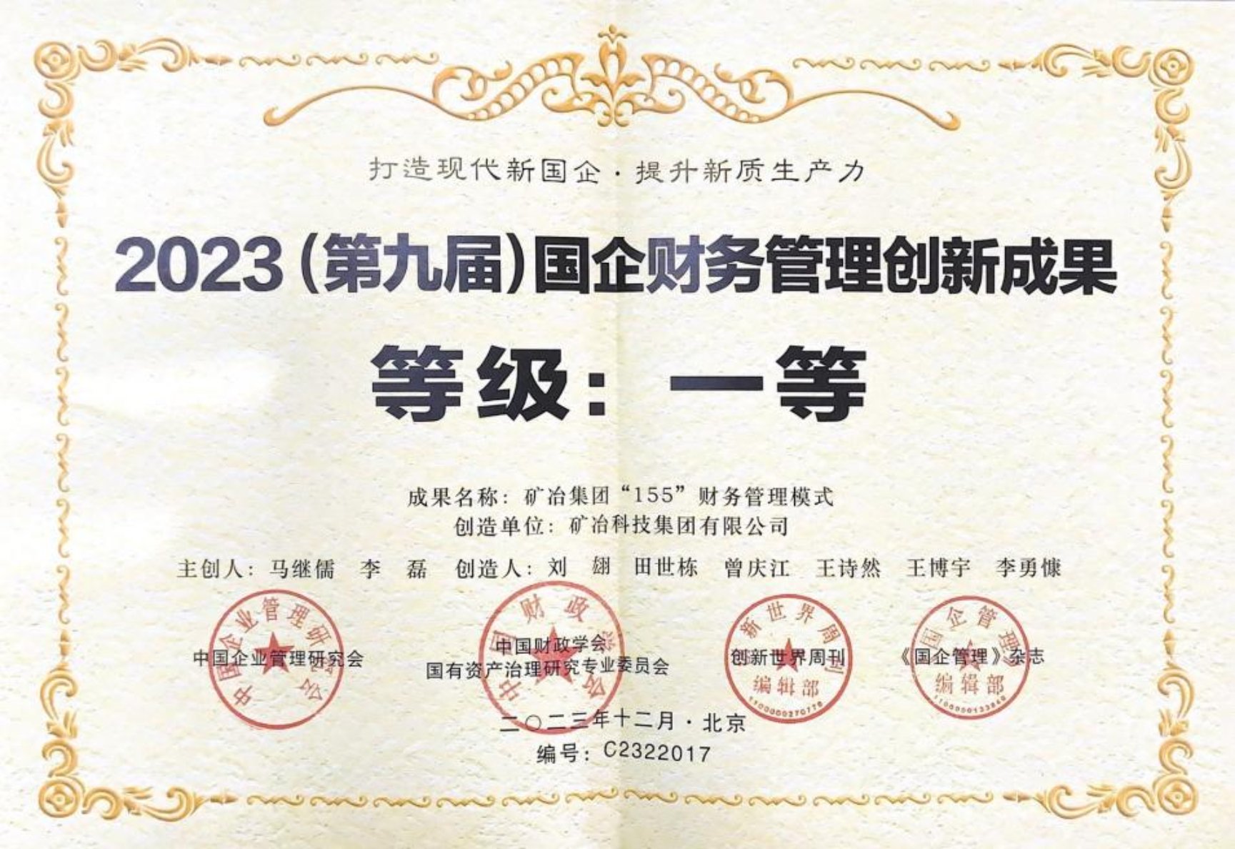 2023年12月23日,2023(第九届)国企管理年会在北京举行,会上发布了2023国企管理创新成果,toto彩票 申报的成果《toto彩票 “155”财务管理模式》荣获一等奖。