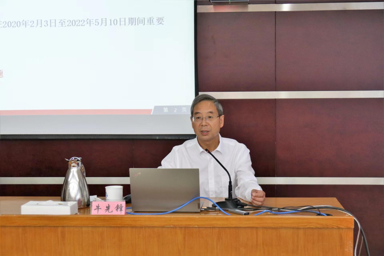 会议邀请中央党校马克思主义学院副院长牛先锋教授做专题报告。牛先锋围绕“学好用好《习近平谈治国理政》第四卷”这一主题,结合习近平总书记关于推进马克思主义中国化时代化的重要论述、习近平总书记在省部级主要领导干部专题研讨班重要讲话精神,对《习近平谈治国理政》第四卷进行深入解读。