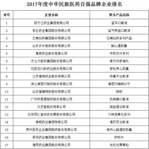 “2017年度中华民族医药百强品牌企业”榜单是商会通过广泛征集,对比企业品牌知名度、企业诚信度以及严守国家相关政策法规等多项标准,经专家委员会讨论审核,最终严选出来的,旨在弘扬民族医药、打造民族品牌,树立标杆、发挥榜样作用、促进中医药行业发展。