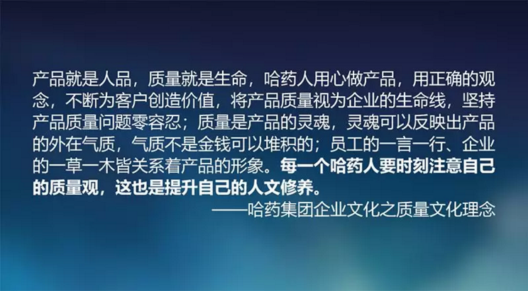 每年9月份都会开展“质量月”活动,旨在提高全体员工质量意识和质量工作水平。对于我们哈药来讲,药品的质量就是我们企业的生命,“做地道药品,做厚道企业”是我们的企业宗旨,集团团委希望通过这次的青年大讲堂活动,帮助广大团员青年树立起更高的质量意识,构建一个更加良好的质量文化氛围。