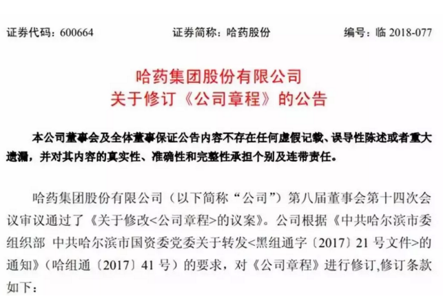 《公司章程》的修改是企业根据《中共哈尔滨市委组织部中共哈尔滨市国资委党委关于转发<黑组通字〔2017〕21 号文件>的通知》(哈组通〔2017〕41 号)的要求对其进行修订。