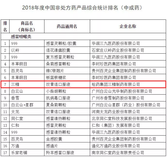 三精制药有限公司双黄连口服液在中成药领域位居榜内。