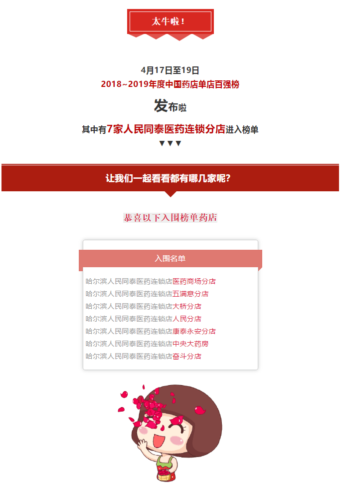 牛!这7家人民同泰医药连锁店上榜“2018-2019年度中国药店单店百强榜”