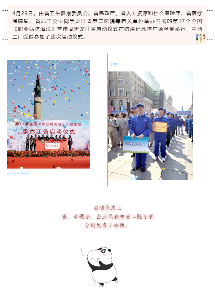 赞!中药二厂受邀参加第17个全国《职业病防治法》宣传周黑龙江省启动仪式啦!