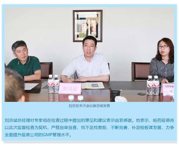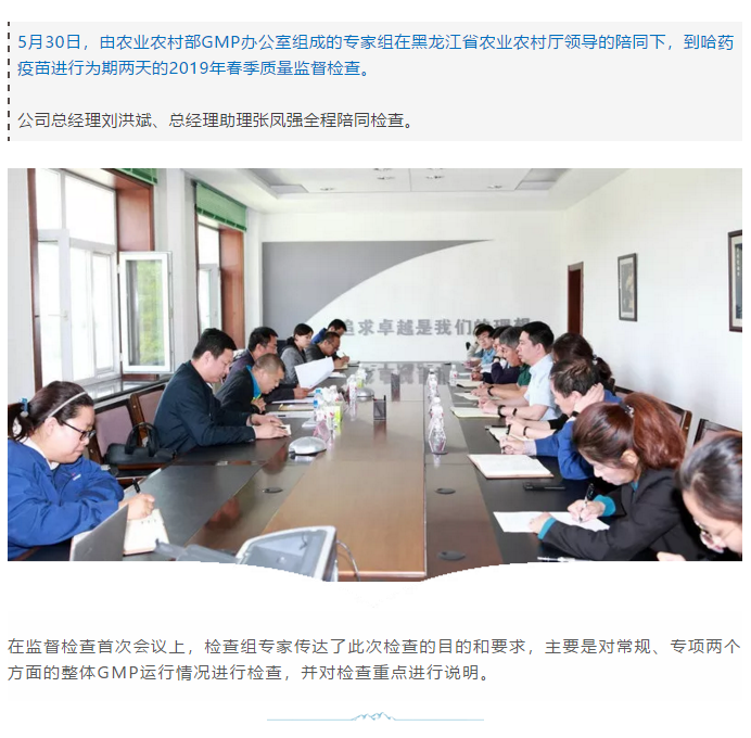 哈药疫苗通过农业农村部GMP专家组质量检查