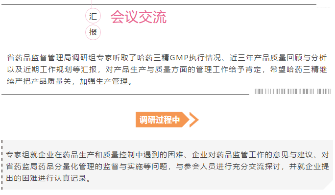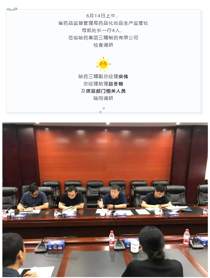 省药品监督管理局领导莅临哈药三精调研产品质量管理工作