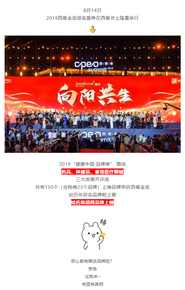 重磅 | 西普2019“健康中国•品牌榜”发布——哈药两品牌上榜!
