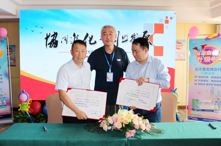 与连锁客户现场进行了复方葡萄糖酸钙口服溶液战略合作签约仪式。