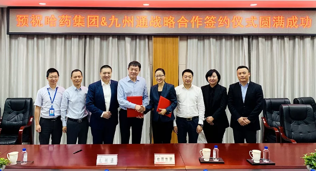 副总经理兼哈药营销公司总裁王鹏浩,营销公司OTC 事业部执行总经理成文辉、市场运营执行总经理白静、OTC事业部零售KA总监施迎音、OTC 事业部南区大区经理吕文刚,九州通集团总经理龚翼华、业务总裁刘义常、总经理助理兼FBBC 终端事业部总经理万有钢、湖北公司总经理田云、采购事业部常务副总经理曾令芝、FBBC 终端事业部总经理助理穆鹏、分销事业部副总周鹏龙、采购事业部北区战略采购总监王晓彦、采购事业部北区采购经理郑恋等参加了签约仪式。