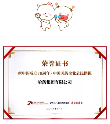 荣获“新中国成立70周年·中国医药企业公民楷模”荣誉称号。
