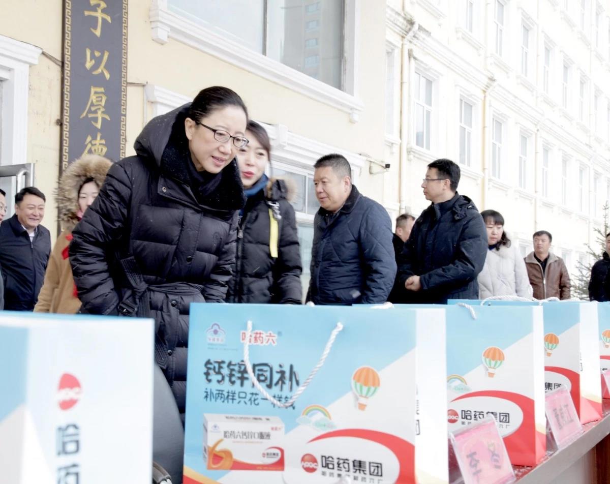 总经理徐海瑛、组织部部长李冬、公益基金会秘书长邱芳菊一行赴依兰为贫困学生捐赠图书及药品,依兰县委常委、组织部长刘国胜,依兰县副县长杜建国、董威江、李颖,愚公乡党委书记张慧锋、乡长韩文君,四新村支书刘清友,哈药扶贫工作队队长徐立亭出席捐赠仪式。