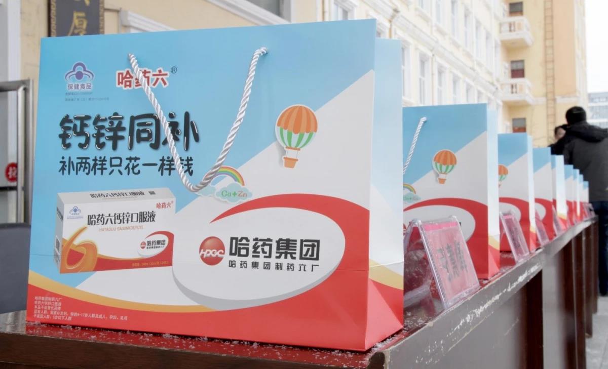 为依兰县300余名贫困学生精心准备的哈药六钙锌口服液和哈药员工捐赠的7000本图书。