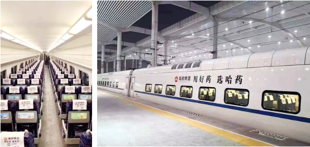 冠名的高铁列车通过车体包装、车内语音播报、LED滚动屏展示哈药品牌和列车内门贴、桌贴、海报等产品宣传与品牌传播形式,以及车厢内座椅枕巾的电商二维码与消费者形成了互动,全面达到了动静结合,品销合一的传播效果。