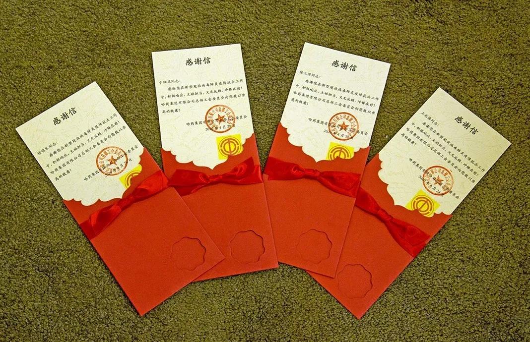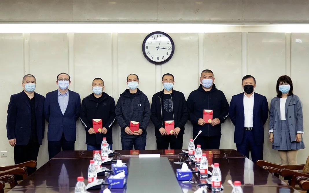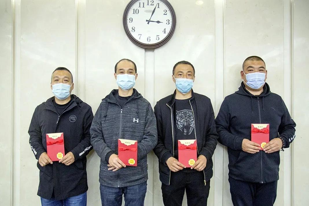 副总经理孟晓东、行政管理部总监高也、工会主席彭文广代表公司为四位平凡的英雄送上感谢信,感谢他们为防控疫情所做的努力与付出,他们是所有员工的榜样。